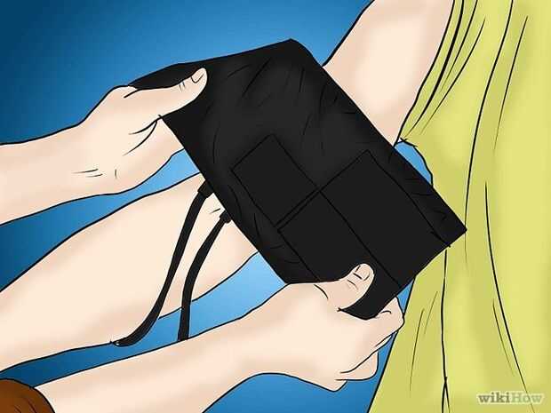 Un esfigmomanómetro manual se une alrededor del brazo de la persona, en la zona del bíceps. Bien puede flejar asegurando los extremos de velcro adhesivo. Hay dos cables que salen de la correa, el indicador que mide en incrementos de 20, cada línea cuenta como 2 mm Hg (milímetros de mercurio). Lee de 0 a 300 mm Hg. El otro cable tiene una bomba de aire con una válvula que permite que la de encendido/apagado. La bomba se utiliza con una mano, con la válvula cerrada, infla la banda en el brazo, cortando la circulación de la sangre. Generalmente se bombea hasta que la aguja Lee 160 mm Hg, entonces la válvula se abre para dejar la correa desinfle, lo que permite el flujo sanguíneo dentro de las arterias. Con el estetoscopio situado junto a la cuff(strap), se recogen sonidos como corre sangre con presión con cada latido.