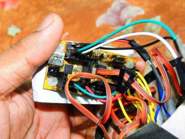 Después de han realizado todas las conexiones, coloque la tarjeta controladora dentro del cuerpo tan exactamente como sea posible como se muestra en la foto... Os adjunto una pequeña cartulina debajo de la tabla y aplica un poco de pegamento, así ello wouls meter dentro del cuerpo y no mover innecesariamente...