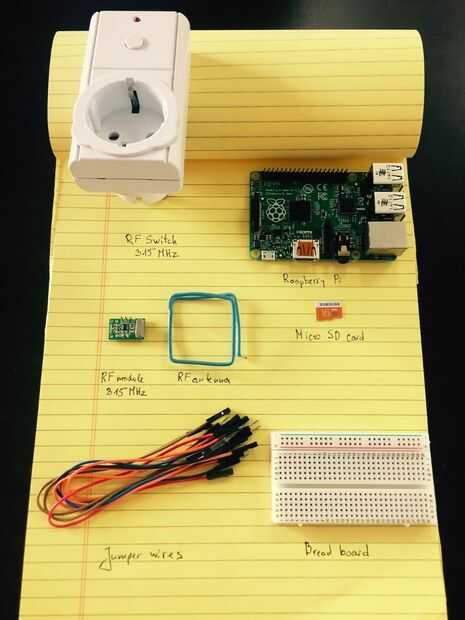 Debe tener frambuesa Pi, tarjeta SD con instalado OS Prota, enchufe inalámbrico (hemos utilizado vatios inteligente), protoboard, cables puente, 315 MHz o módulo de RF de 433 MHz con antena (aprender a hacer antena usted aquí).