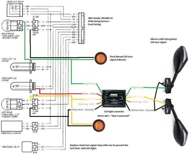 Los delanteros frente a LEDs integrados en los espejos que en todo momento un funcionamiento / marcador de luces para aumentar la visibilidad (tal vez aumento de seguridad). El LED montado al ras, lateral son normalmente apagado. Cuando lo que indica una vuelta los espejos y al ras montaje LEDs flash sincronizado. El convertidor de luz de cola permite el espejo 2 hilos LED para funcionar como 3 cables, con la luz, luz incandescente como stock trabajado.