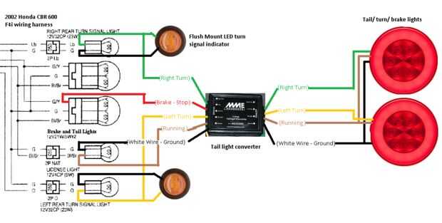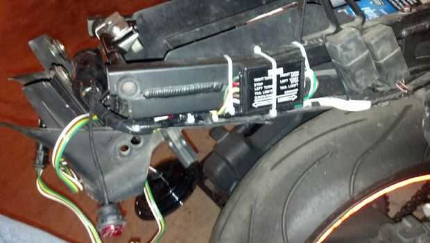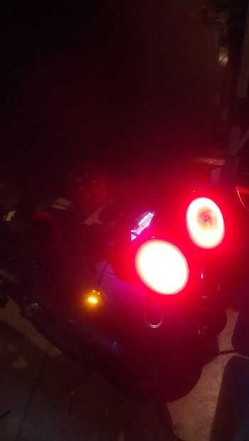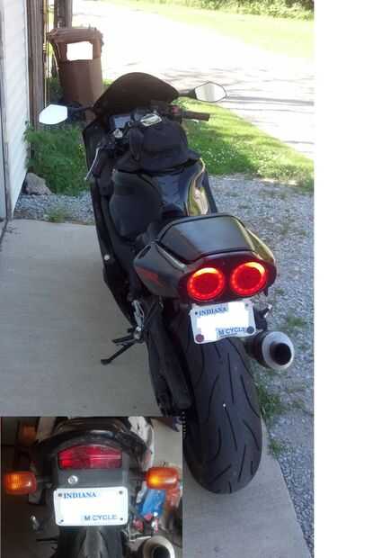 El ámbar en la parte trasera de la moto había cambiado a rojo. Se señaló a mí que usted puede decirle a la parte delantera de la parte posterior por el color de las luces (ámbar / amarillo o blanco en la parte delantera y rojo en la parte posterior). Aunque puedo utilizar color ámbar en la parte trasera, rojo es posiblemente una mejor opción.