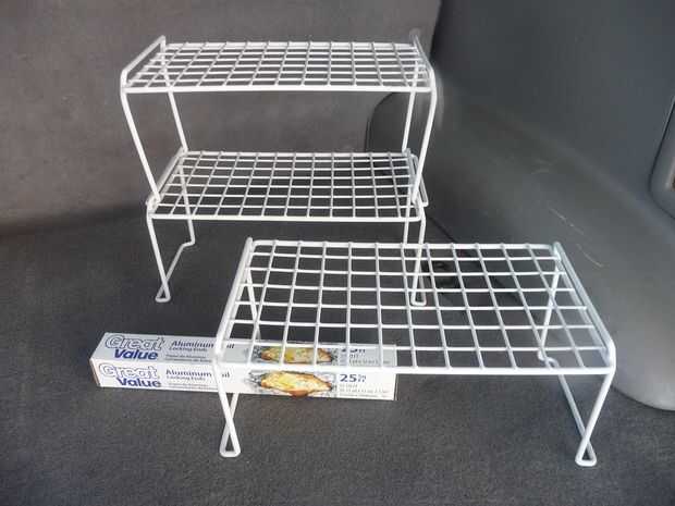 Volver a propósito pequeño congelador estantes porque pueden ser apilados juntos como repisas y son portátiles. Una hoja de papel, en la parte inferior, coge cualquier goteo