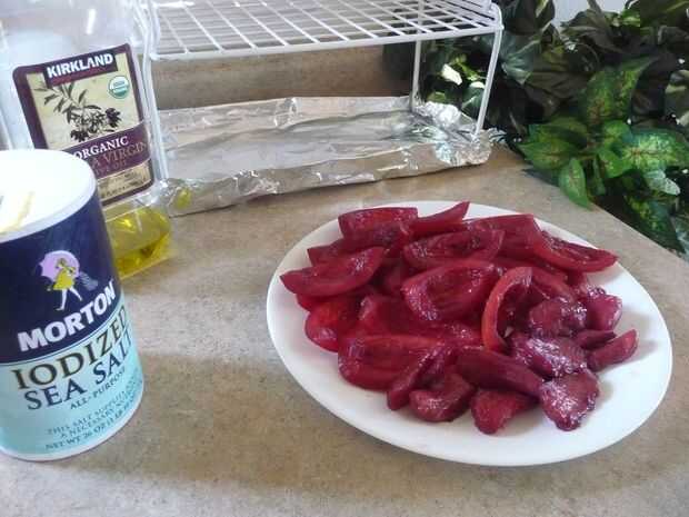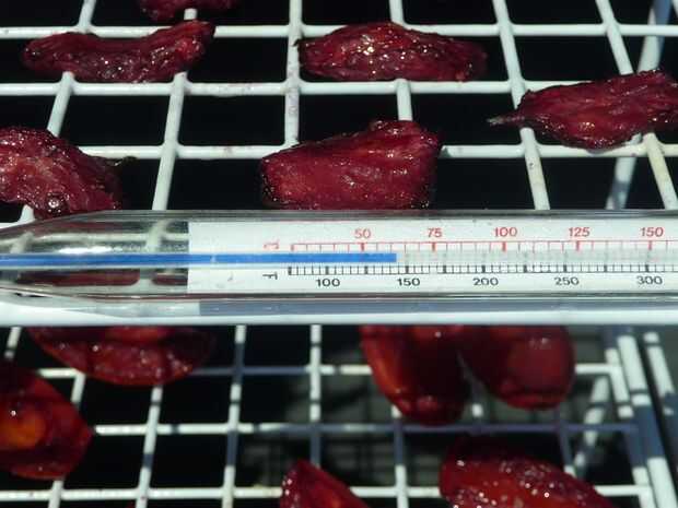 Compruebe los tomates después de 4 a 6 horas. Darles la vuelta en el estante de secado y continuar asando hasta que se firma suave, correosa y secan. Podría tomar varios días antes de que los tomates están listos para almacenar asi que tengan paciencia. Realmente las cosas buenas vienen a aquellos que esperan! ;-D