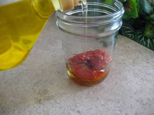 El aceite de oliva infundido de tomate sobrante puede ser utilizado en recetas como bruschetta, rociado con las verduras o añadido a cualquier aderezo de ensalada de la casa.