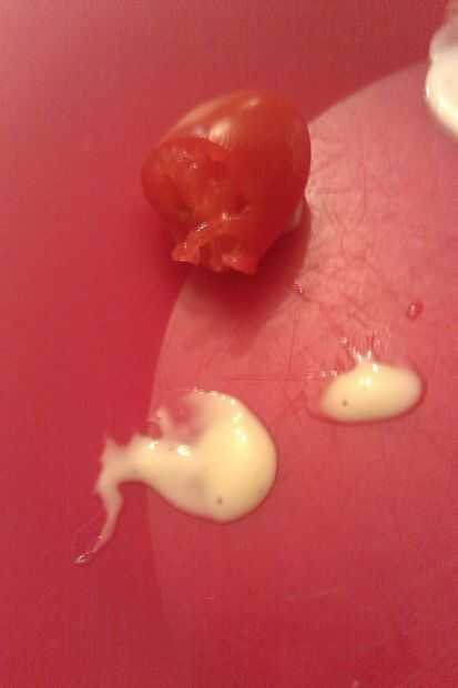 Morder el tomate por la mitad. Nota: Tenga cuidado de que no soplan las semillas!