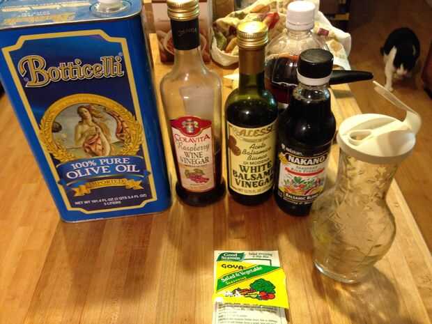 Me gusta usar paquetes de aderezo para ensaladas buenas temporadas o Goya con vino tinto y aceite de oliva. Tal vez un toque de balsámico blanco también.