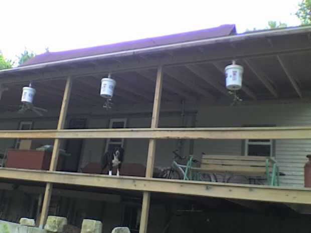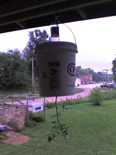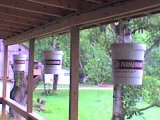 Me utiliza y combina varias ideas que vi en así como otros sitios Web. He adquirido una serie de cubos de 5 galones "pickle" con las tapas para este proyecto. Perezoso, combinan el he creado con un sistema de riego por goteo con un temporizador que puede ser objeto de otro Instructable, excepto que hay un montón de sitios web comerciales que explica adecuadamente como crear tal sistema de riego por goteo de macetas al revés. Combiné que riego por goteo con un "embudo" de una botella de un litro pop (soda) con la parte inferior corta estilo"embudo" para recoger el agua del sistema de riego por goteo y canalizarla en cada maceta cubo de 5 galones.