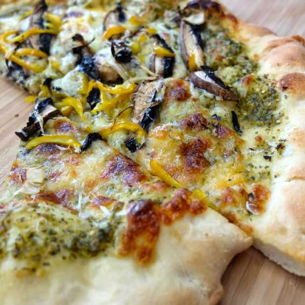 No es pesto. Sé que sé. Se puede hacer pizza con pesto. Esa es una idea digna, pero esto no es eso.