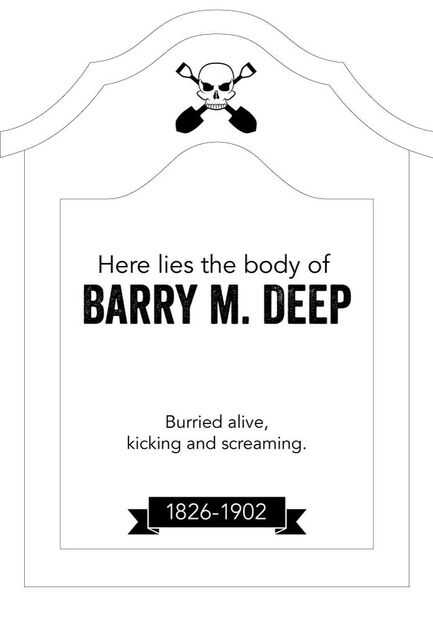 Hice algunas investigaciones en línea y encontrar una forma de la piedra sepulcral me gustó y utiliza como base de mi. Desde allí usted puede embellecer a su contenido de corazones. Sabía que el mío iba a ser llamado a Barry M. Deep, así que comencé a diseñar un cráneo y pala insignia de bandera pirata para él. ¿Que hizo en el diseño final? Jajaja ¿Por qué no? En su mayoría causa soy perezoso, pero también se acaba el tiempo. Para mi lápidas más complicados, incluso he utilizado google Sketchup para tener una mejor idea de lo que debe saltar o lo que debe ser empotrado. Los más altibajos tiene en su diseño, el drama más añade a su pieza.