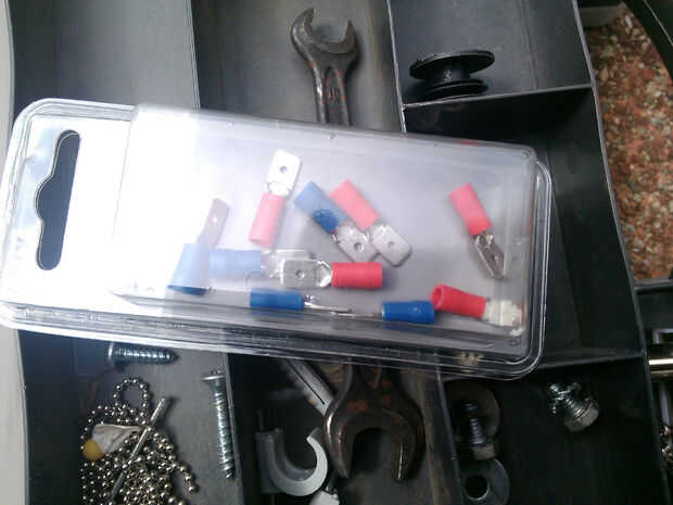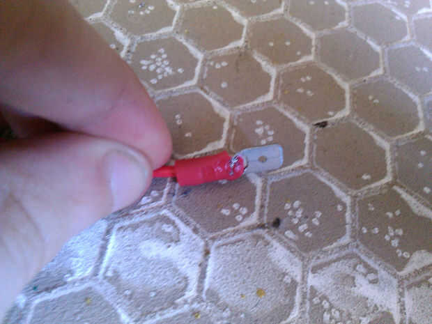 Había desconectado el conector hembra crimp de la linterna común y prensó un conector macho crimp en un cable rojo para las luces.