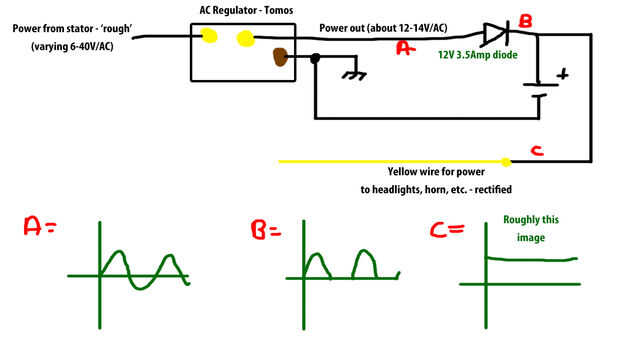 Los cables amarillo/verde de las luces fueron conectados con los cables marrón de los Tomos en un conector hembra de la prensado y el conector estaba conectado a la tierra de la linterna del stock.