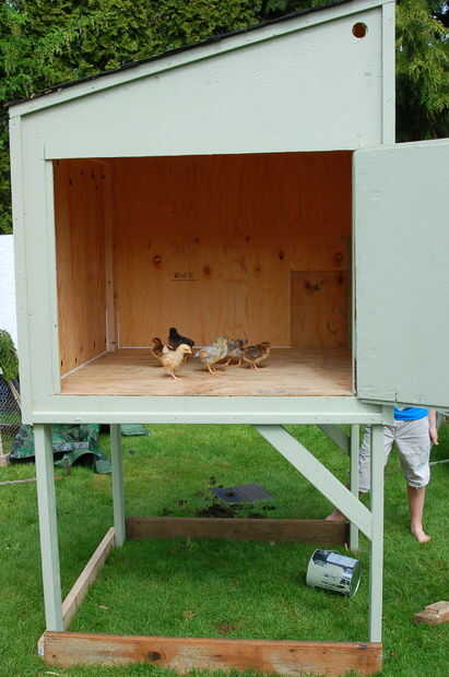 Mi esposa ha ido tuercas para los pollos. Culpo a Pinterest. Ella quería una cooperativa para su cumpleaños y pollos... así que aquí está cómo le construí la coop. El patio pequeño cercado en parte se añadirán más tarde.