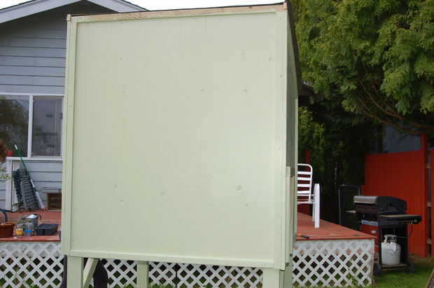 A continuación, cada uno pintado con algunos restos de pintura de la ferretería * (usted puede conseguir ofertas en pintura que es un color apagado. Gallinas no pueden ver color por lo que es bueno.) Pintamos todo, superior inferior, lados, parte inferior. Porque no uso nada tratada a presión o particularmente favorable al clima, adoba en la pintura.