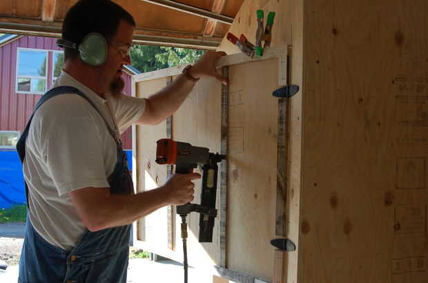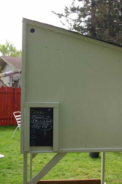 Se ha añadido algún adorno para la casa y la puerta. 1 x 2 pegados y engrapados en... y había añadido una puerta pequeña de pollo que se desliza hacia arriba y hacia abajo.