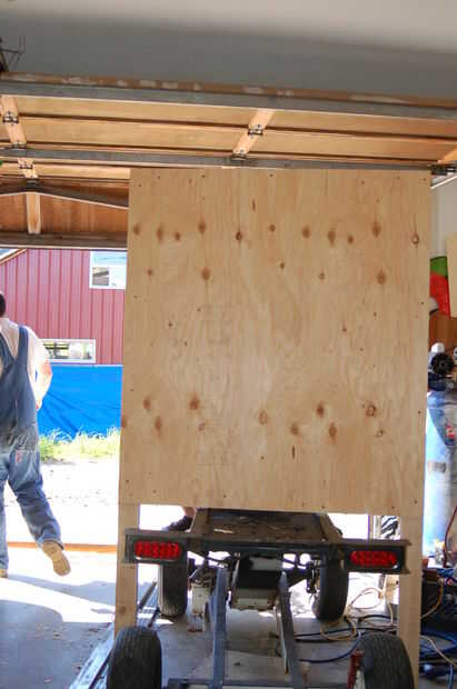 Línea de los bordes al ras con el 2 x 4 y la madera contrachapada.