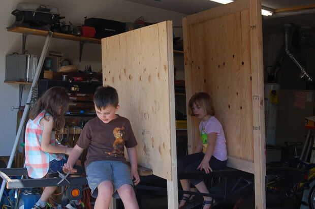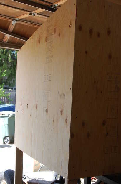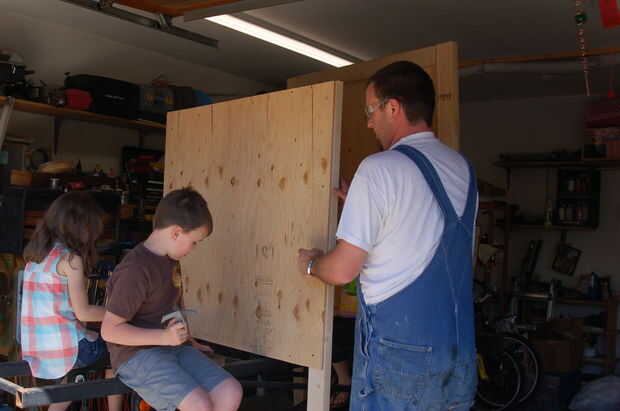Encolar y atornillar los lados a las partes delanteras y traseros. Es importante alinear el borde de la madera contrachapada con el borde de la 2 x 4 no la madera contrachapada de. Ver el dibujo.
