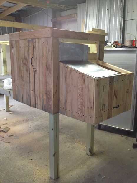 la necesidad de un tonel de pollo de muy bajo costo me trajo a esta solución.Necesitaba muy pocas herramientas y un montón de buen trabajo viejo de moda. Mi hijo fue una gran ayuda para el desmontaje de los palets y la construcción fue estrictamente