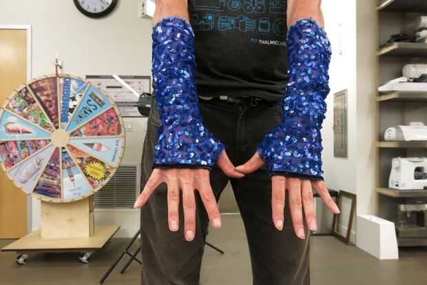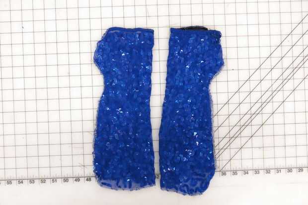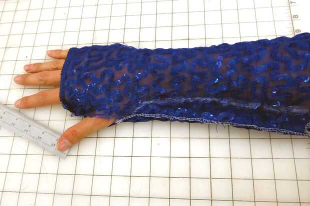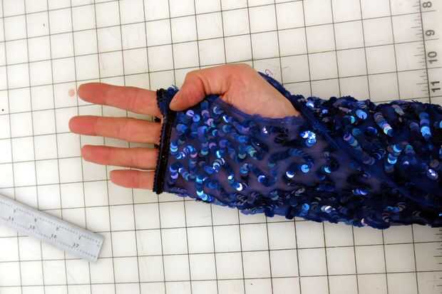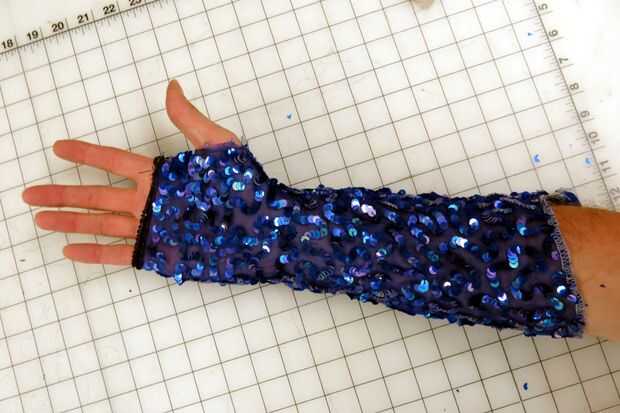 Tomé a la tela de las mangas y coser en tubos. Entonces dieron a estos tubos algunos agujeros del pulgar e intuitivamente y de forma iterativa los forma en algo que parecía de guantes y manguitos.