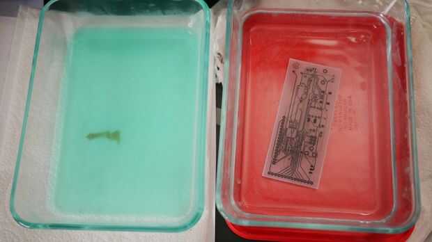 - Poner la placa en y agite. Vuelta y vuelta el tablero cada 30 segundos. Prueba para un etch incluso.