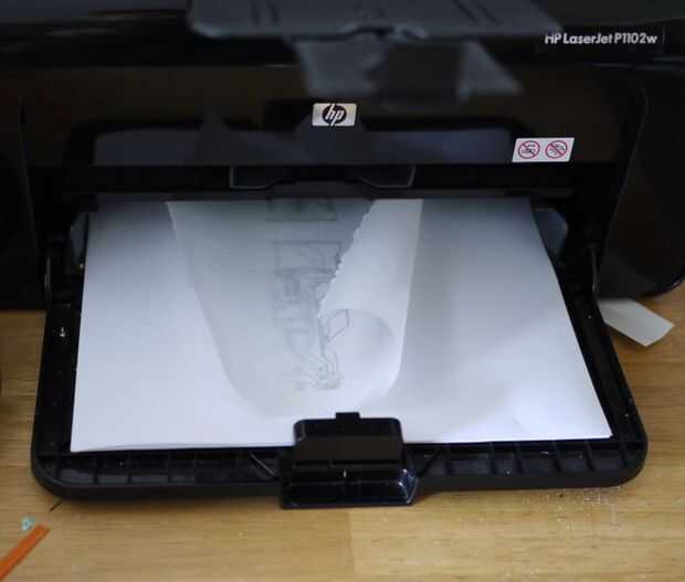 Luego imprimes otra vez, excepto que esta vez que el toner es el pergamino que puede extraer desde el papel y la transferencia del toner a la placa de cobre.