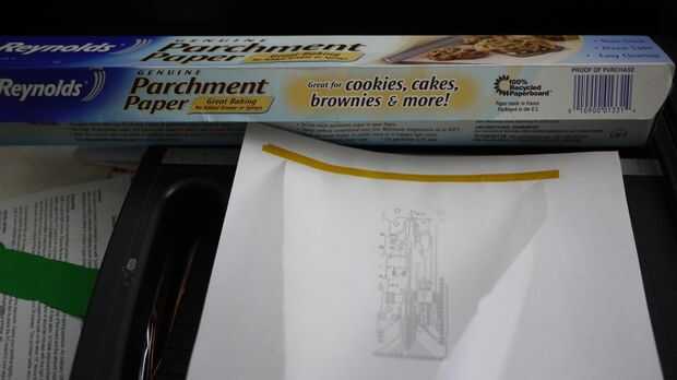 1. usted puede usar cinta doble palo bajo el papel de pergamino en lugar de Kapton [he intentado esto y funciona muy bien. Incluso puede volver a utilizar la cinta y el papel fácilmente. -Dustin]