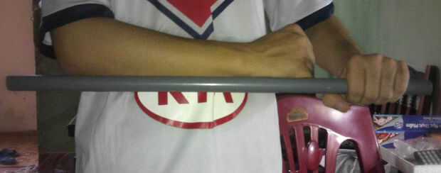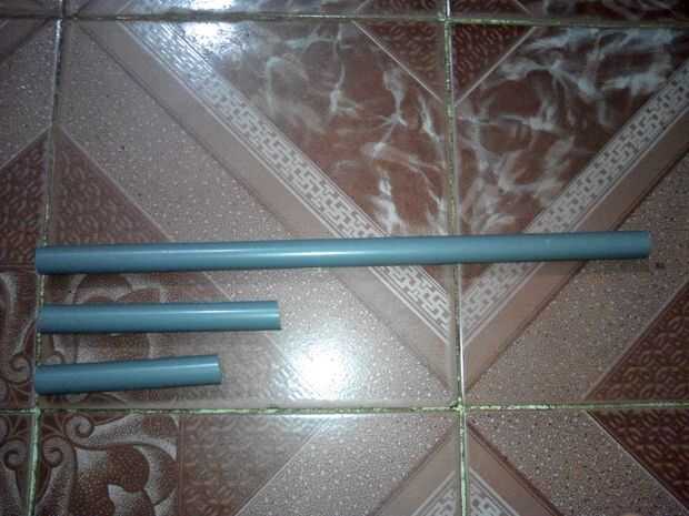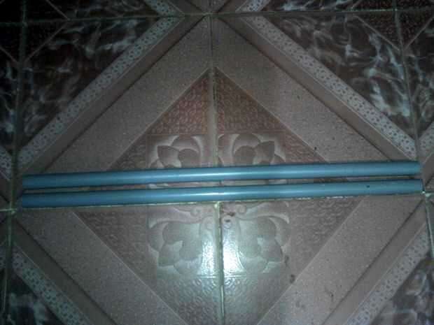 Para elegir la longitud de su deseo que su brazo, recomiendo total longitud de la tonfa es 2/3 de la longitud de la pierna. Elija dónde cortar el tubo: es debe ser más que una longitud de mano por el extremo corto y casi una longitud de la mano de extremo largo a su codo. Extremo corto es un poco más largo que el mango.