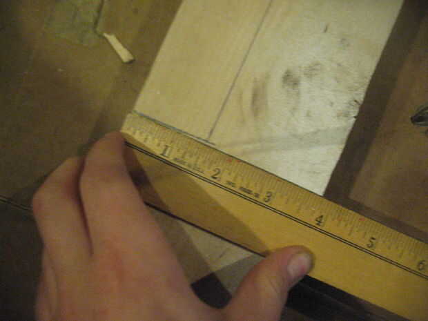 Para determinar la longitud de la hoja de la tonfa, medida desde el codo hasta la punta de su dedo medio y añadir una pulgada. Esto marca el 2 x 4. Para mí, es 18". Ahora, Descance el brazo sobre la madera para que el codo es aproximadamente 1/2 pulgadas desde el extremo. Desde allí, hacer un puño y marca Dónde está el centro de su puño. Esto es donde irá el mango. Ancho de la hoja es igual a la de espesor de 2 x 4. Si se lo mide, es no 2 pulgadas por 4 pulgadas, está más cerca de 1.5" de 3.5''. Cuando terminé de medición, mina was18 "x1.5" x1.5 ".