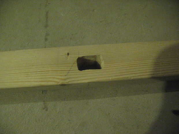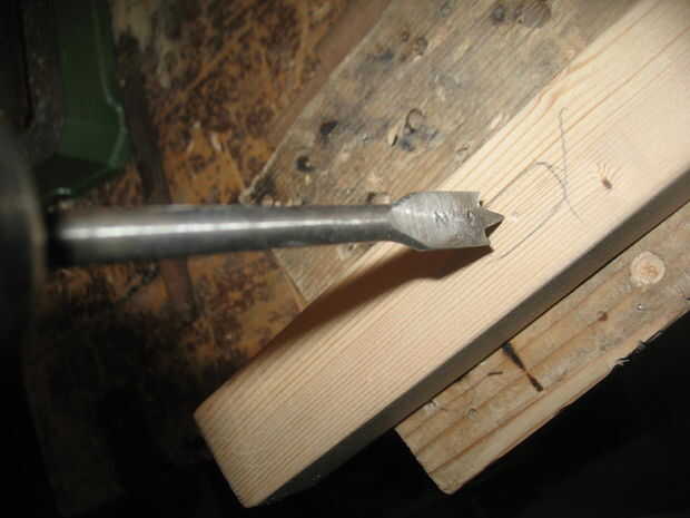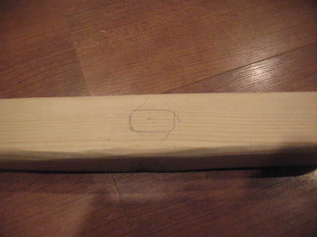 Usted puede practicar en la madera de desecho hasta llegar justo. Medir 1/2 '' en el borde en el punto que previamente hayas agregado como su posición de la manija y marca a cada lado. Seguimiento de la parte inferior de la manija en la hoja por lo que parece en la foto. Use el 1/2 '' broca para perforar 2 orificios dentro de las marcas. Ahora utilizar los archivos para formar el agujero hasta que la manija quede firmemente.