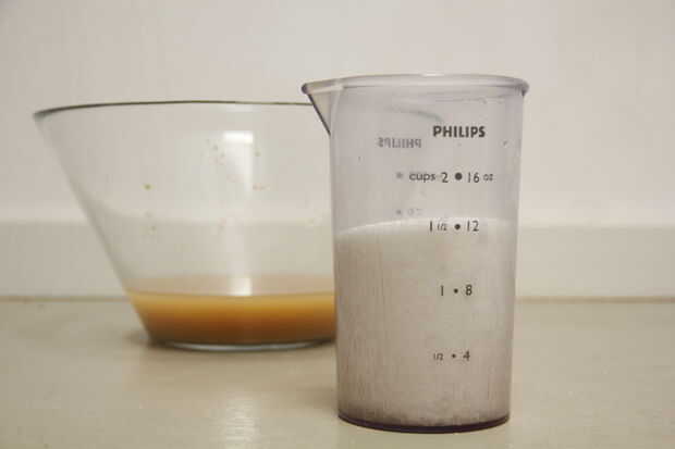 3. Mezcle el jarabe a la mezcla refrigerado por agua/azúcar (tip: si es más caliente que la temperatura de su piel entonces es demasiado caliente para la levadura)