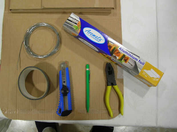 sí, es un koala peluche. Mi gato no disponible actualmente para una sesión de fotos!Paso 1: materialesCinta aislante (si tiene plata, puede omitir un paso :)CartónPapel de aluminioCinta adhesiva normalAlgo para dibujarAguja/tachuela/puntiagudos loPas