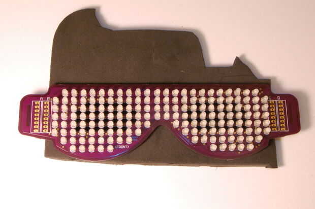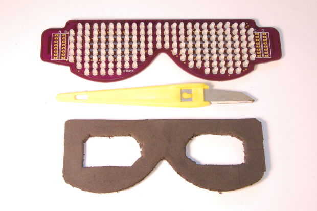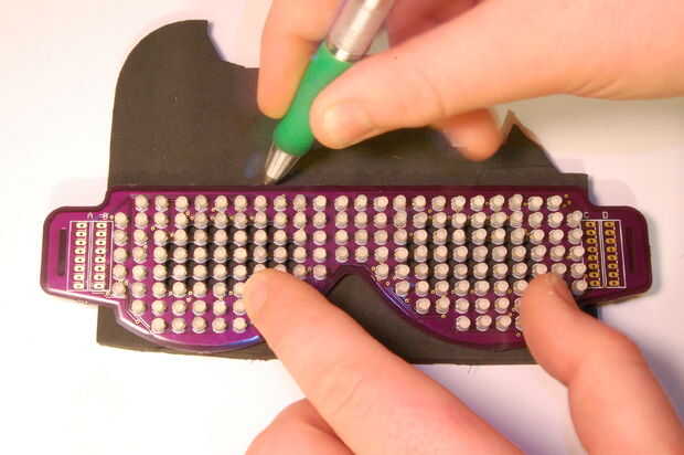 - Usando una pistola de pegamento caliente del derretimiento, pegar con cuidado este recorte de espuma en el PCB. Asegúrese de que la almohadilla de cada soldadura en cada lado (A, B, C y D) son accesibles desde ambos lados. (Imagen 6)