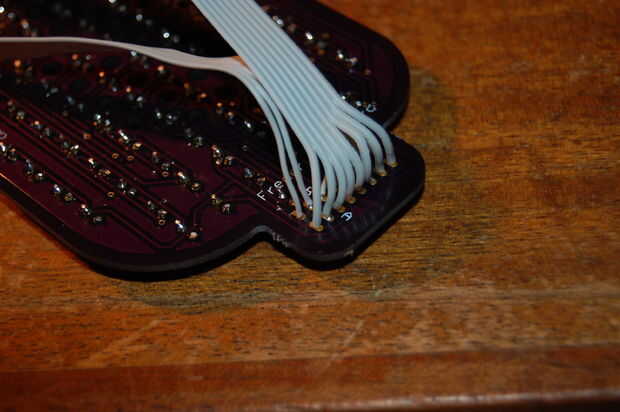 - Soldar cada cable el cable para cada cojín en caja A del conductor. Se cerciora de que los cables en una manera linear de la soldadura y mantenga en el orden en que se encuentran en el cable. (Imagen 4)