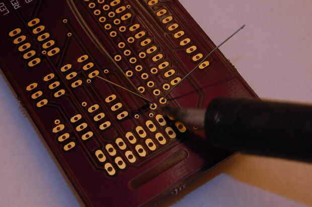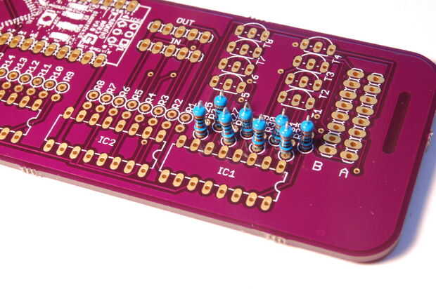 - Doble las piernas hacia afuera de la resistencia y luego de la soldadura de la resistencia en lugar. (Imágenes 4 y 5). Si usted nueva soldadura o quieres mejorar tu técnica, te recomiendo ver este gran vídeo de Dave Jones en el EEVblog.