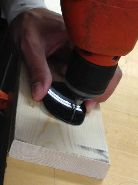 Asegúrese de que usted tiene algo debajo de la lente cuando se taladre. He utilizado un trozo de madera que se sujeta sobre la mesa para la estabilidad. Sostenga la parte de la lente donde desea perforar plano en el tablero de madera y lentamente la presión del taladro hasta el agujero.