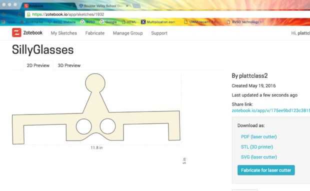 Vaya a Zotebook.io para recortar las gafas (comprobar que está listo para imprimir escala y nombrando su diseño).