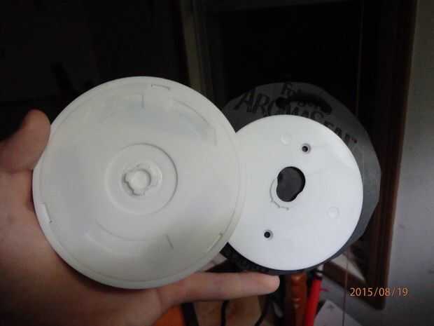 el arco es un traplight con el LED conectado a un café cortado puede tapa. Cuando usted corta el café puede hacer tapa Shure que u dejar suficiente espacio para los agujeros y las cuerdas. la luz del grifo debe tener pegamento en la parte posterior.