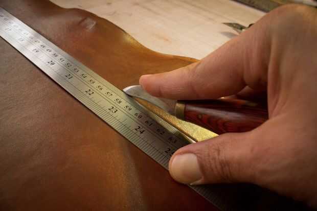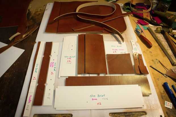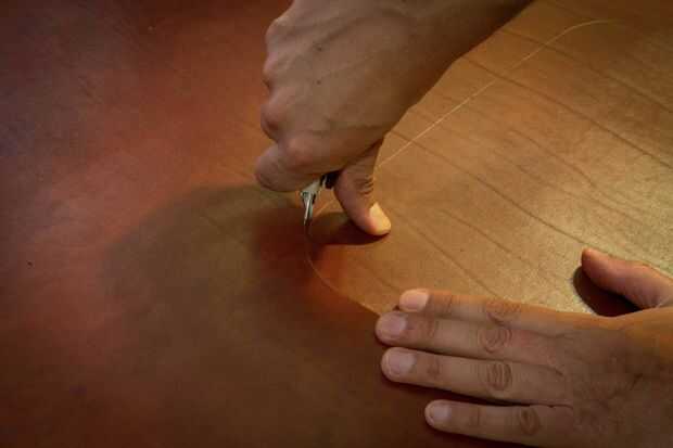 Utilice un borde recto acero para todos tus cortes rectos. Presione hacia abajo firmemente como se necesita una buena cantidad de presión para cortar el cuero pesado. A mano alzada cualquier curva. Puede que necesite dos pases en las curvas para cortar a través de todo el camino. Asegúrese de que tener todas sus piezas.