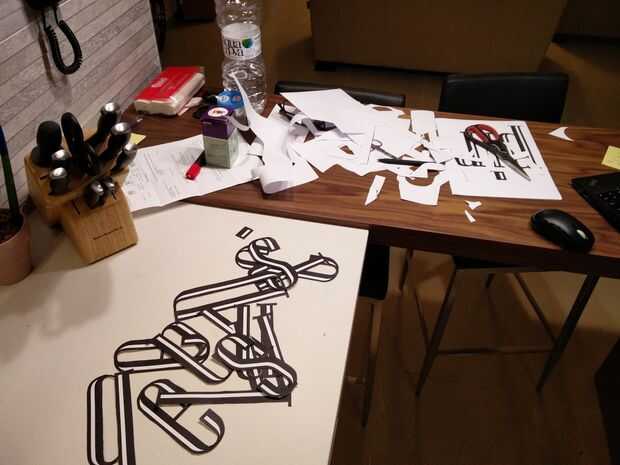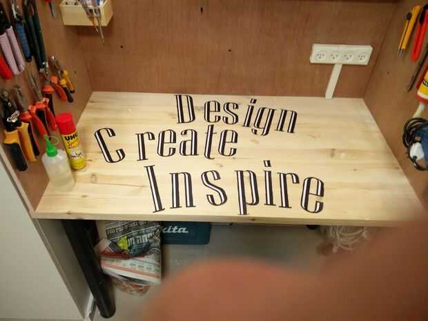 Me decidí a imprimir un montón de Letras con una la frase siguiente "Diseño crear inspirar", necesitará cortar cada letra por separado y pegarlas en la pared (tomó para siempre!)