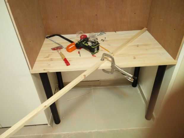Así que he creado un pequeño soporte para el LED. Usted necesita cortar 3 piezas de madera aserrada de pino y unido al bastidor con tornillos