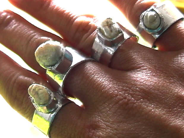 ¿El divertido reto era cómo impulsar las capacidades de varias recetas de arcilla para imitar dientes de aspecto realista y anillos de metal imitación? Estos anillos no son para usar, son esculturas 3d para la visualización. Estoy realmente agradecido por lo que queda de mis gemas preciosas.