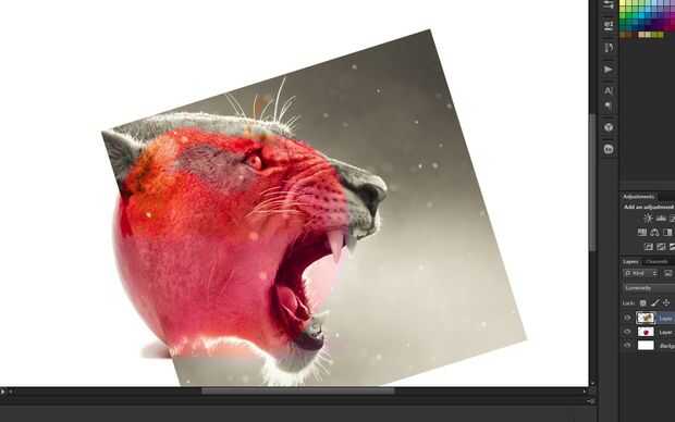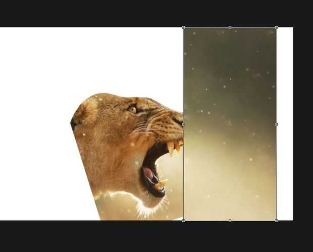 Transformar todo hasta llegar a la positsion mejor. Luego crea un trazado con la herramienta pluma (que es más difícil pero mucho mejor que las herramientas lasoo) para borrar el exceso León. (al crear una ruta de acceso completa, haga clic derecho y hacer la selección. Luego a solo eliminarlo; usando el botón delete mientras la capa del León está activa).