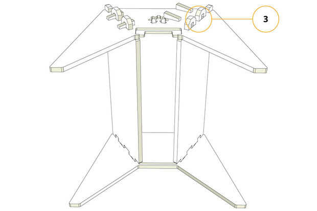 Sigue descansando en el suelo añadir las cuñas a las juntas de cierre de los paneles laterales. Dejar suelto por ahora.