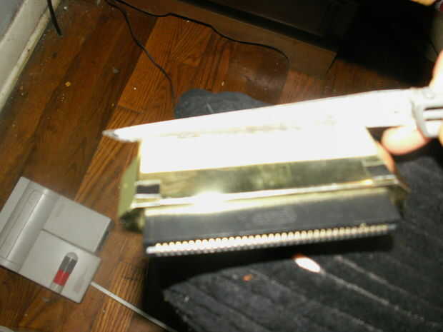 OK listo que ahora esto cabrá en una NES de carga superior, solo presione en la NES con un poco de fuerza y aparecerá en su lugar. También corte las correas de plástico negro que son inútiles con el NES de carga superior.