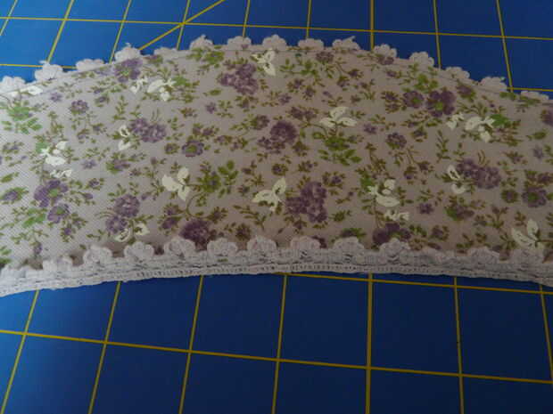 También he añadido ajuste a los bordes de mi correa. Puede utilizar el cordón o elástico, o dejarlo plano si usted quiere. Tuve suerte, ya que tenía la camisa de flores que corté a recortar alrededor del cuello cuando lo conseguí. Quitar el embellecedor original con un destripador de la costura y había colocado en el lado derecho de la correa. Alinea el borde plano de la moldura con el borde de corte de la correa y cosido en la parte inferior de las vieiras. Entonces, he hojeado la moldura al revés, para que sólo las vieiras asomó hacia fuera de debajo de la camisa. Topstitched la guarnición para mantener en su lugar. (Utilicé el mismo proceso para la otra sisa, también).