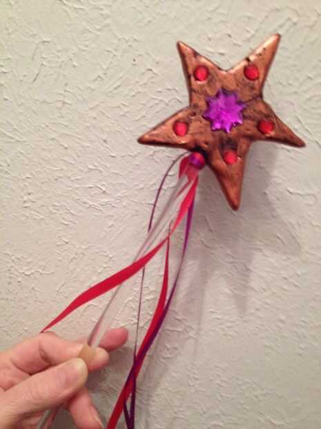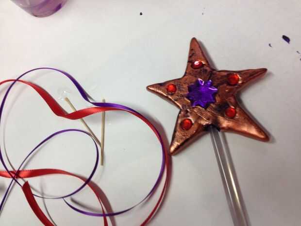 Amarre las cintas juntas en base de estrella. Otra vez usando un palillo de dientes, aplicó un poco de pegamento E6000 en el nudo, para asegurar no es y usa otro poco de pegamento para asegurar las cintas a la varilla de acrílico, por lo que no sólo se deslizó hacia abajo.