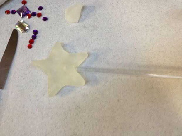 Cuando la estrella es moldeable, empuje la varilla de acrílico en la estrella en una de las abolladuras.