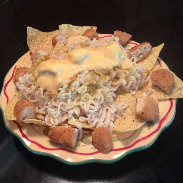 Esparcir la otra mitad del paquete de condimento y ta-da! Disfrute de su creación! Siempre podría ser modificado mediante la adición de cualquier carne querías, ají o salsa. Próxima vez alrededor creo que voy a unos chiles jalapeños en rodajas para condimentar para arriba un poco. Experimento con diferentes sabores de ramen, queso suave o caliente, tal vez incluso utilizar Doritos en lugar de chips de tortilla regular. Hacerla suya, hacer buena y comer lento!