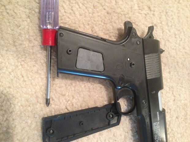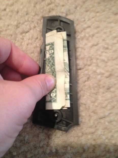 1:Take un suave aire pistola con un apretón de mano desmontable y sacarlos. 2:fold tu pedazo de papel o dinero y lo puso en la empuñadura. Vuelva a 3:Put el agarre.