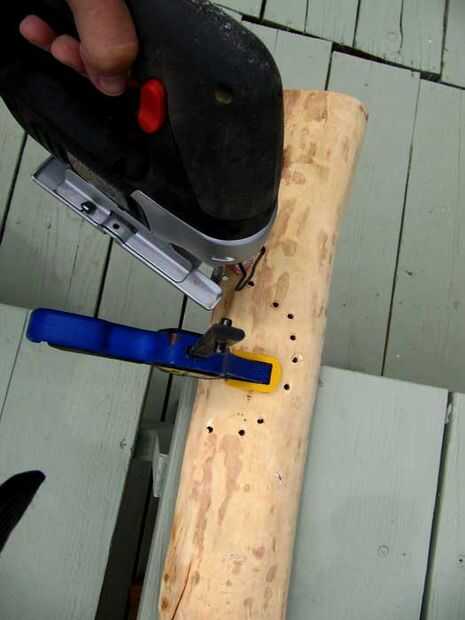Con la sierra caladora, corte a lo largo de las marcas de la plantilla hasta el borde de su mesa de trabajo (o borde de la cubierta).