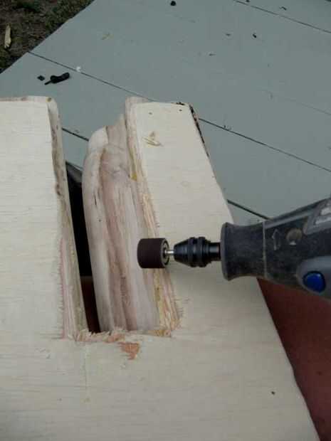 Así que recorte la madera contrachapada espalda para caber los pies.